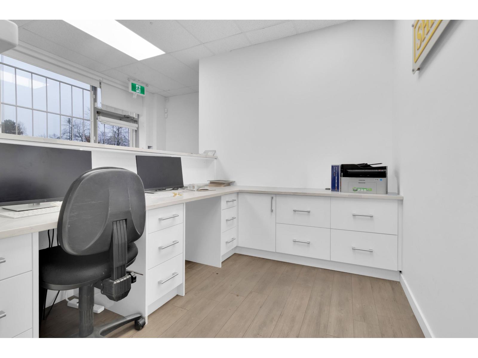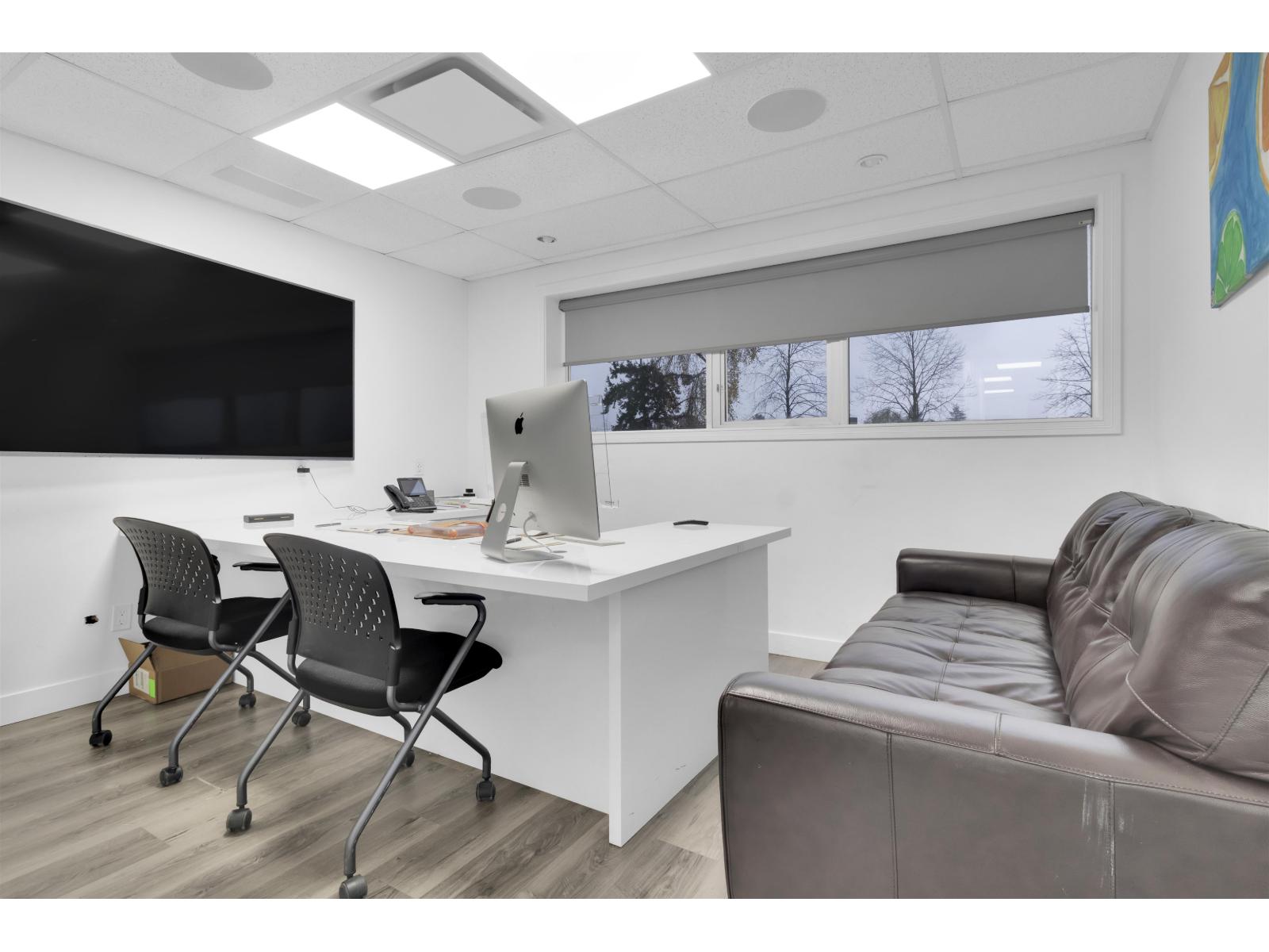 Fantastic opportunity to own a front entrance, rear-loading industrial unit with a very low strata fee of just $252/month. This property features approx. 1,700 sq. ft. on the main floor with a warehouse and office, plus 1,120 sq. ft. on the upper level with three offices, a pantry, and separate rear access. Zoned IL, allowing for a variety of business uses. Located in a prime area 134 St & 78 Ave, just one block from King George Blvd, offering maximum window exposure and convenience. Perfect for owner-operators or investors--use part of the space and rent out the rest for positive cash flow. Freshly painted with a recently installed HVAC system. Whether you're expanding your business or looking for a solid investment, this is a must-see property in a high-demand area. (id:23770)